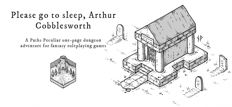 Premise: “The eccentric, but rather successful, merchant Arthur Cobblesworth died a few months ago and was buried in his mausoleum. Since then there have been reports of Arthur “howling like a bloody banshee” during dark nights. The townsfolk are afraid that Mr. Cobblesworth will wake the other dead in the cemetery, and want the player characters to go and put him to sleep again.”